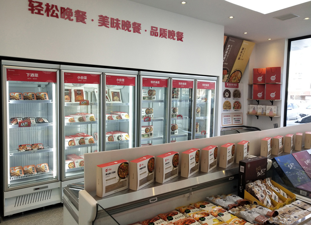 지방산과 청도 등지 밀키트 기업 제품이 다종다양한 연길시 ‘홈 쿠킹 ’밀키트마트 일각/ 본사기자