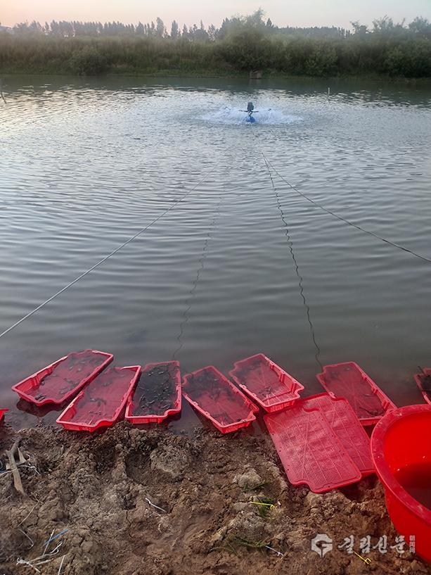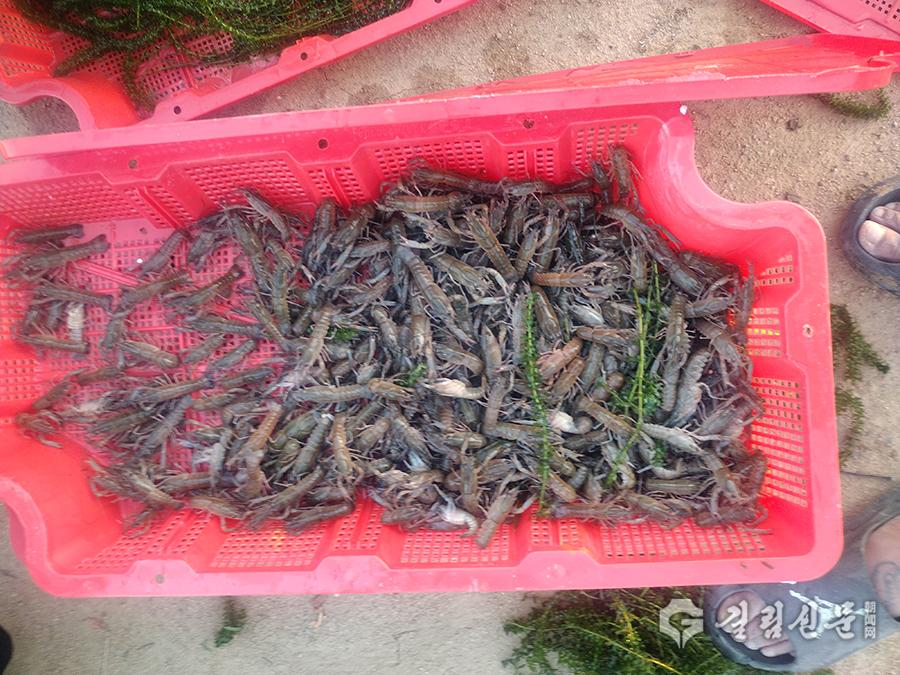 6월 18일 저녁무렵, 새우모종 투입현장에서 양식업자들은 차례 대로 상자를 열고 온도를 측정하고 수온에 적응시킨후 산소를 넣어 처리하는 등 절차를 거쳐 사전에 계획한 모종 투입 거리와 투입 포인트에 따라 블루 랍스터 모종을 투입했다. 저수지 물의 따스함을 느낀 새우 모종들이 흥분한 듯 앞다투어 ‘새 터전’으로 헤염쳐갔다.