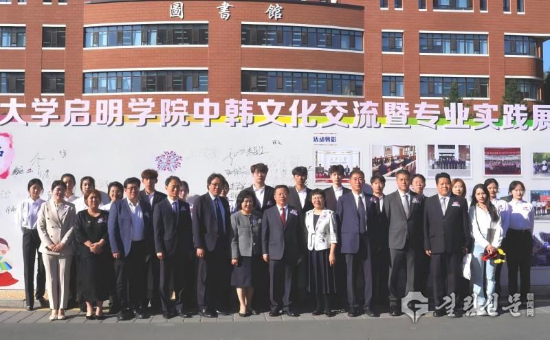 한국 계명대학 일행이 계명학원에서 개최한 중한문화교류 및 전공실습전시전을 둘러본 후