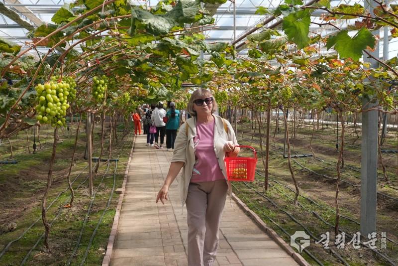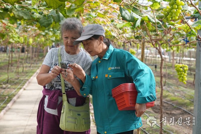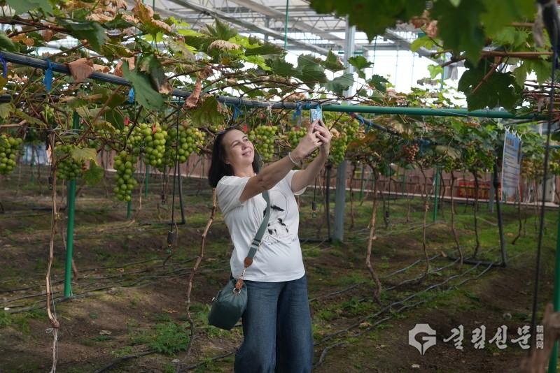 외국인들은 포도밭을 거닐면서 달콤한 포도를 따며 ‘과수원 농부’의 특별한 즐거움을 만긱했다. 문화 체험 코너에서는 한복 시연 공간이 순식간에 ‘시간 려행’의 현장으로 변모해 많은 외국인들이 정교한 한복을 입고 거울 속의 자신을 보며 “나도 이런 고전적인 멋을 지니다니!”라며 감탄했다.