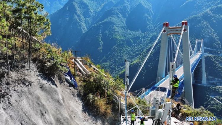중국이동통신 운남회사가 려향(丽香)철도 호도협(虎跳峽)금사강(金沙江)철도대교 구간에서 네트워크를 구축하고 있다. /신화넷
