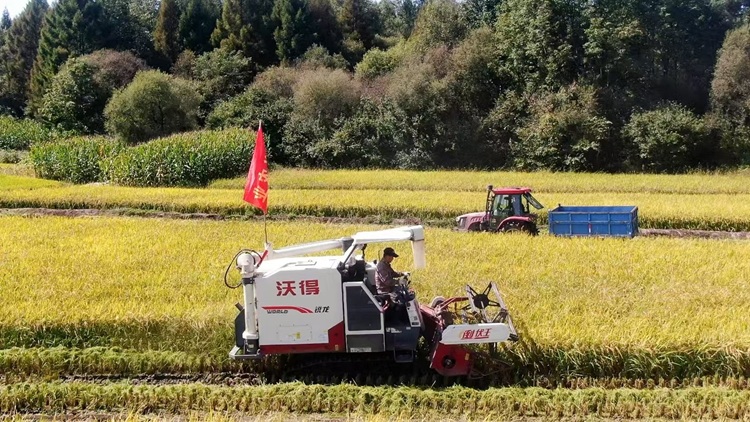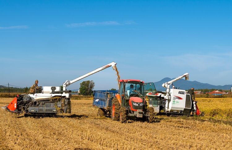 “올해 우리 합작사는 2,000무의 벼를 재배하여 무당 약 1,200근의 수확을 올렸습니다. 모든 작업은 기계화로 진행됩니다.”