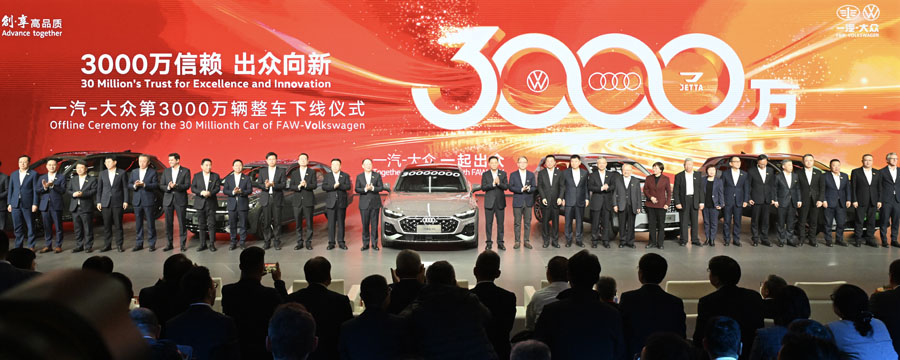 기념식에서 성당위 상무위원이며 장춘시당위 서기인 장은혜, 중국자동차공업협회 상무 부회장이며 비서장인 부병봉, 중국제1자동차 리사장이며 당위서기인 구현동이 축사를 진행했다. 독일 주중 대사인 푸룽과 독일 폭스바겐그룹 리사회 주석인 오보무는 영상 축사에서 제1자동차-폭스바겐이 3000만 대의 완성차 생산을 진심으로 축하하면서 량측의 협력 관계가 새로운 성과를 거듭 달성하고 제1자동차-폭스바겐이 더 큰 성과를 창출하기를 기원했다. 호옥정과 구현동은 제1자동차-폭스바겐의 력임 지도자 및 직원 대표에게 감사패를 수여했으며 제1자동차-폭스바겐의 제1임 중국측 총경리인 림간위가 축사를 진행했다. 중국제1자동차 총경리인 류역공은 제1자동차-폭스바겐 고객에게 전속훈장을 수여했다. 중국제1자동차 부총경리이며 제1자동차-폭스바겐 총경리인 진빈이 기업 전략 발표를 진행함과 동시에 3,000만 고객 감사 기간의 전속 혜택을 공개했다. 현장 참석자들은 제1자동차-폭스바겐의 3,000만 대 완성차 생산을 함께 목격했으며 아우디 Q5L, 신형 폭스바겐 마이탄, 아우디 A5L, 제타 VS8, 폭스바겐 ID4 등 스타 모델들이 현장에 집결했다.