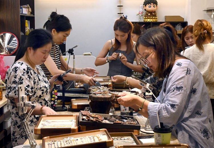 10월 14일, 의오국제상업무역성 1구역 시장에서 액세서리를 고르고 있는 관광객들. /신화넷