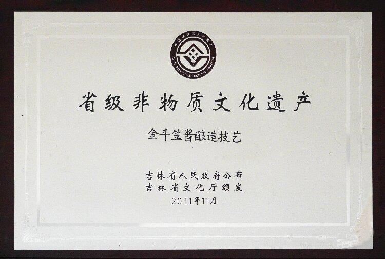 2011년 길림성정부와 길림성문화청으로부터 수상한 ‘성급 무형문화유산’ 현판.