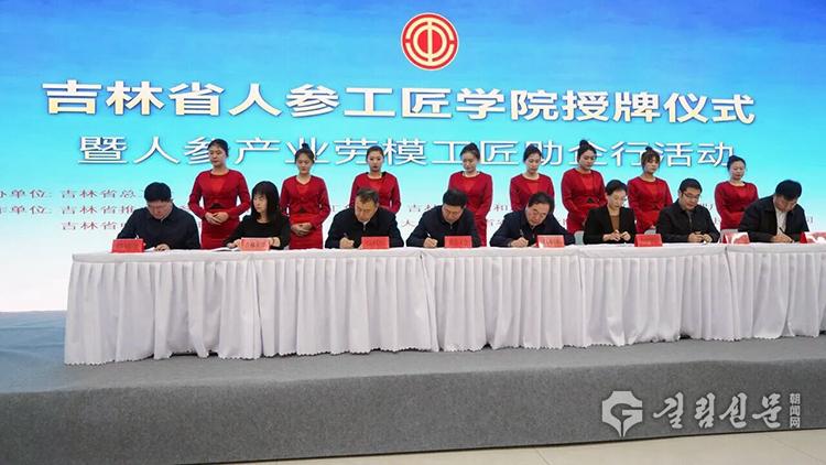 행사에서 성총공회, 성인삼전담팀, 성시장감독관리청, 성중의약관리국, 길림대학, 길림농업대학, 길림성농업과학원, 길림운령야산삼과학기술개발유한회사의 관련 책임자들이 공동으로 길림성인삼장인대학 협력프레임워크(框架)협약에 서명하고 길림성인삼장인학원에 간판을 수여했으며 통화, 백산, 연변 등 3개 지역의 실습기지에 간판을 수여했다.