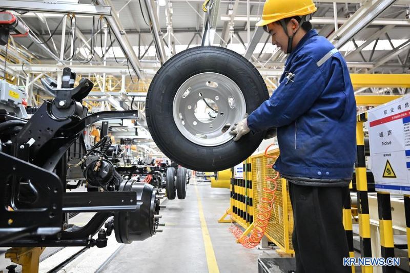 2025년 12월 12일, 하남성 상구(商丘)시 예상(豫商)경제기술개발구의 한 신에너지차 기업에서 생산작업중인 직원. /신화넷