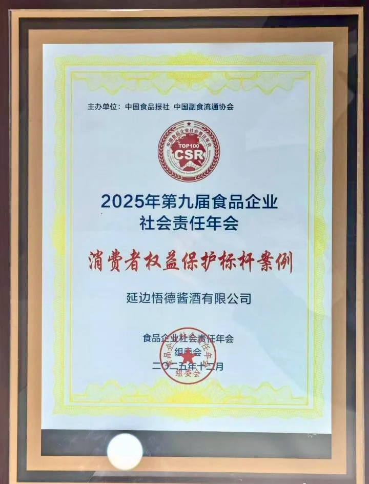 얼마전 북경에서 열린 '제9회 중국식품기업 사회책임 년차회의'에서 연변오덕된장술유한회사가 전국 '소비자권익보호 선도사례' 기업으로 선정되였다. 이번 평가는 식품 안전, 품질 보장, 과학기술 혁신, 소비자 권익 보호 등 분야의 종합적 성과를 바탕으로 진행되였다.