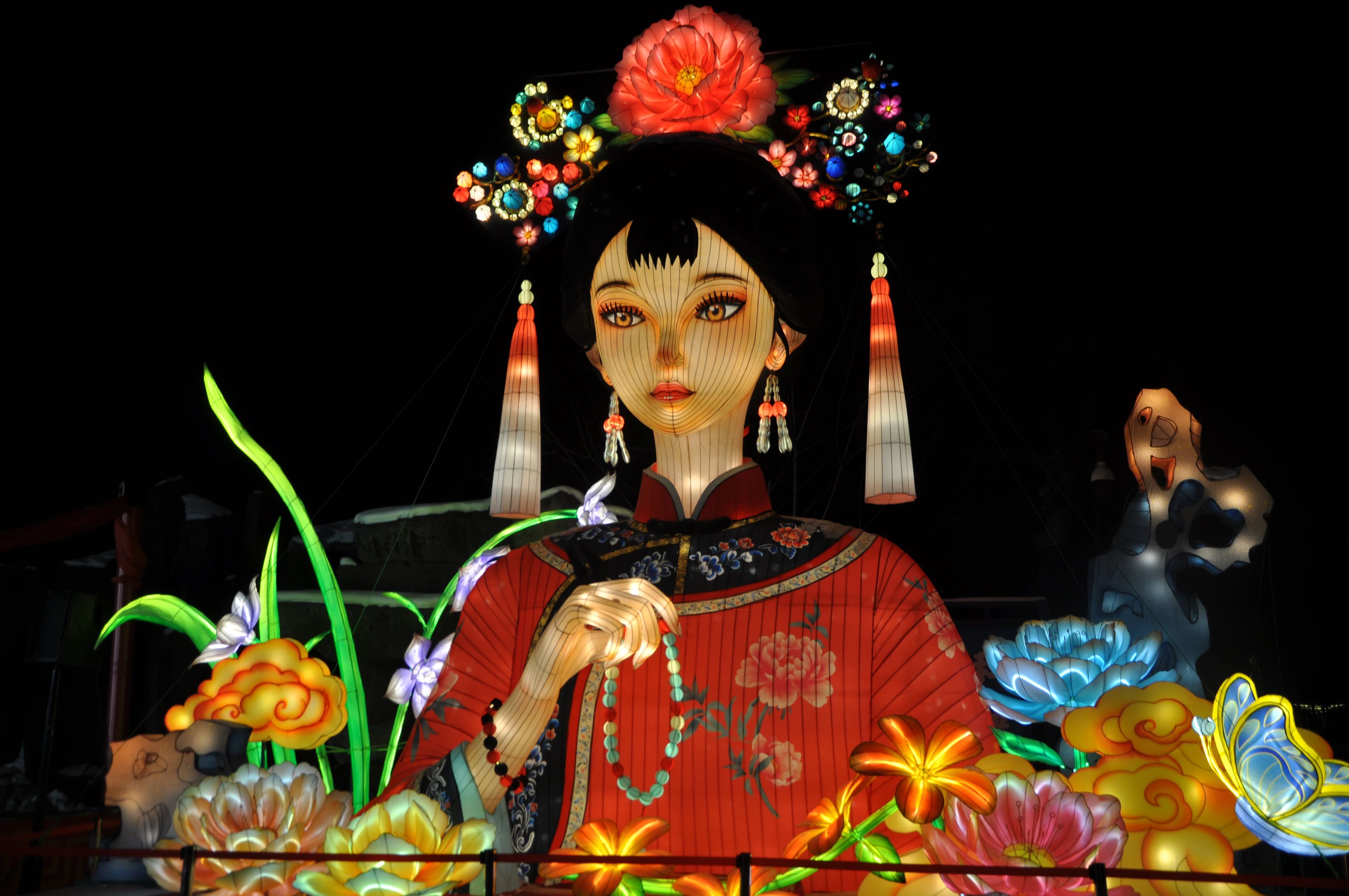 전통 복장을 한 강남공원의 울라공주 등불조형