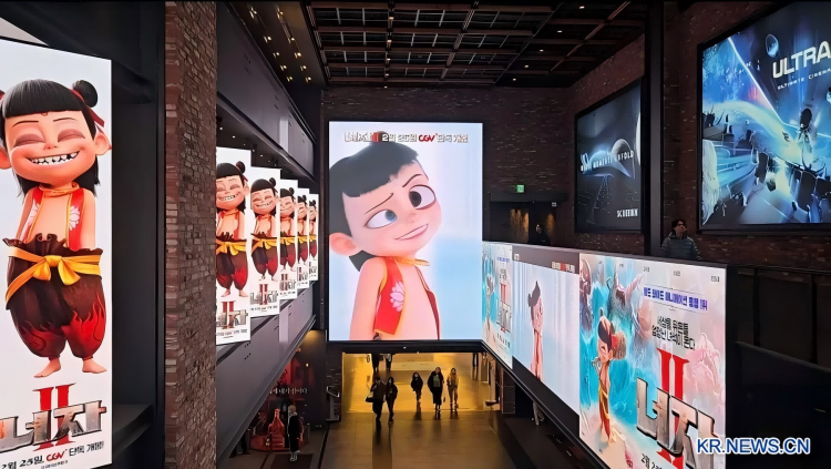 ‘나타2’의 개봉일인 25일 한국 서울 용산 CGV에 걸린 홍보 화면