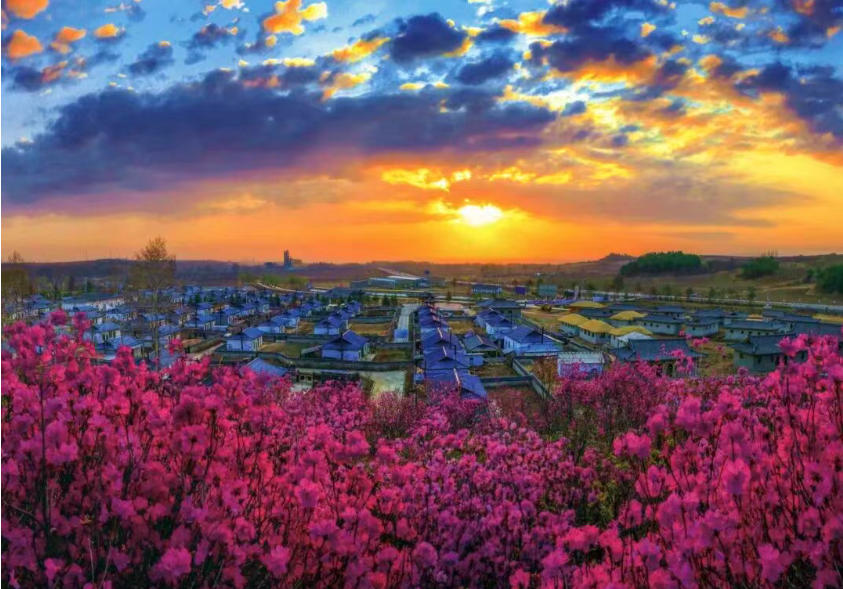 서쪽으로 향하면 화룡시진달래민속촌에서 붉은 꽃잎이 활짝 피여난다. 붉은 꽃송이가 언덕을 물들이며 꽃바다를 이루고 있고 그 사이에 자리 잡은 약수동 항일기념지는 홍색 유전자와 꽃물결이 어우러져 봄날의 아름다움에 의미를 더한다.