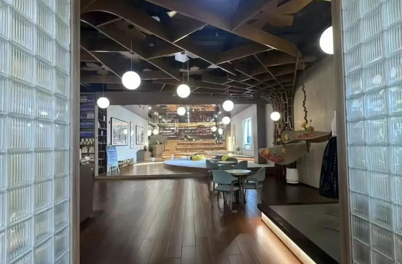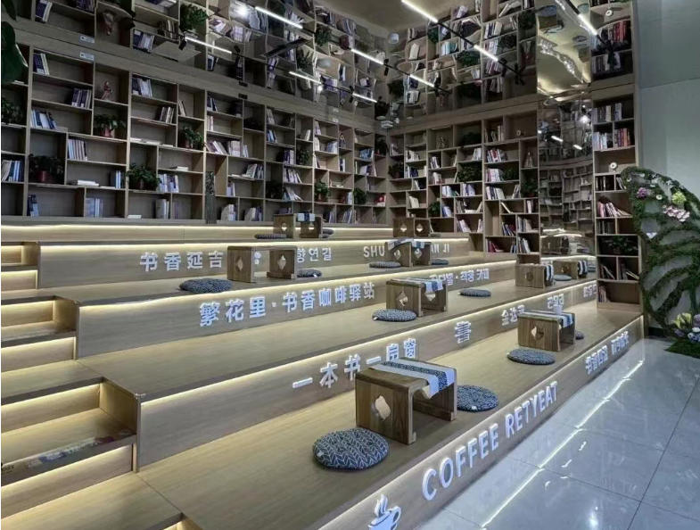 7. 연북로와 연집거리 교차로 북카페쉼터: 금방기복을 주제로 한 문화창의제품을 감상하고 구매할 수 있는 공간으로 특색 커피가 준비되여 있다.