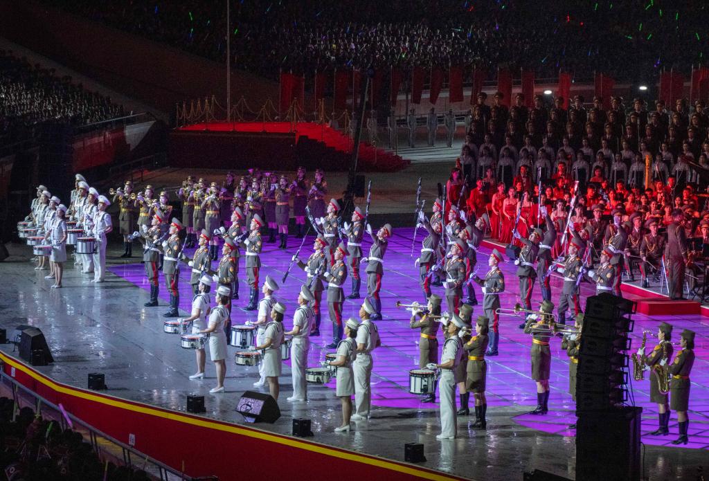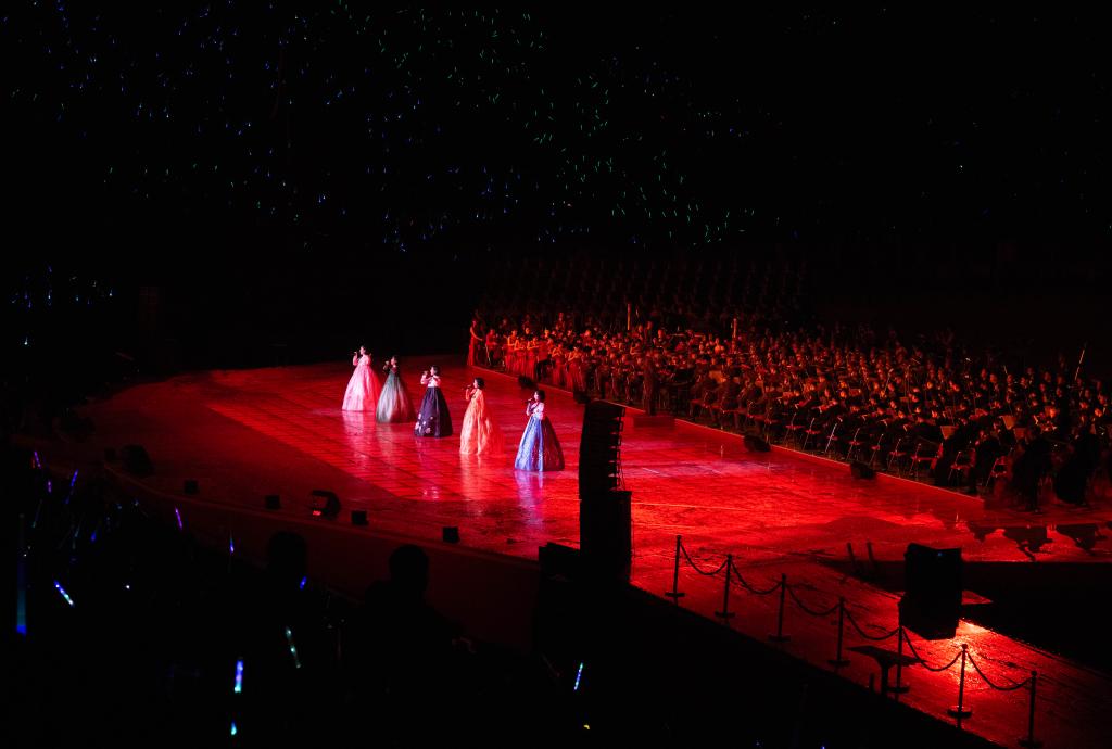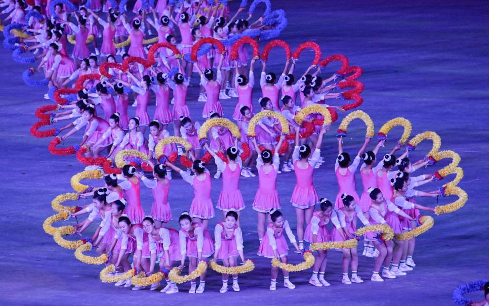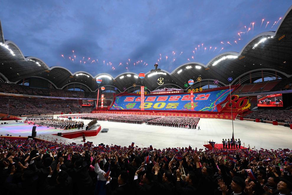 10월 9일, 조선로동당 창건 80주년 경축대회가 평양 5.1체육장에서 거행되였다. 이날 저녁 이곳에서는 대형 단체체조와 문예공연이 있었다.