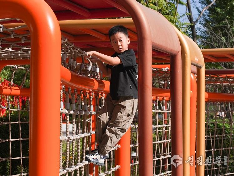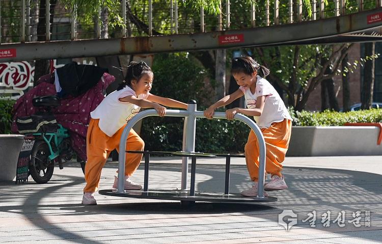 남쪽 광장에서 즐겁게 뛰여노는 어린이들.