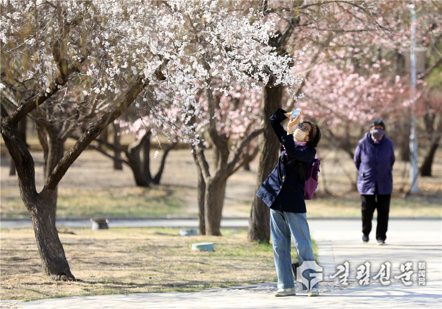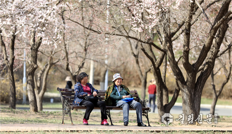 4월 23일, 완연한 봄기운이 감도는 장춘공원에 나들이를 나온 로인들이 벤치에 앉아 따스한 해살을 만끽했다.