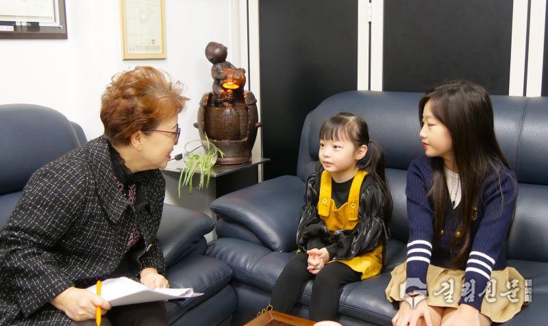 인터뷰에 응하고 있는 윤소율(6세)과 언니 윤소민(10세)
