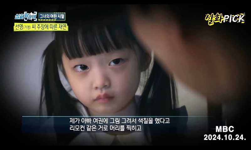 2024년 MBC 실화탐사대 <엄마를 고소합니다>에서 주인공 어린시절 역을 출연한 윤소율(캡쳐사진)