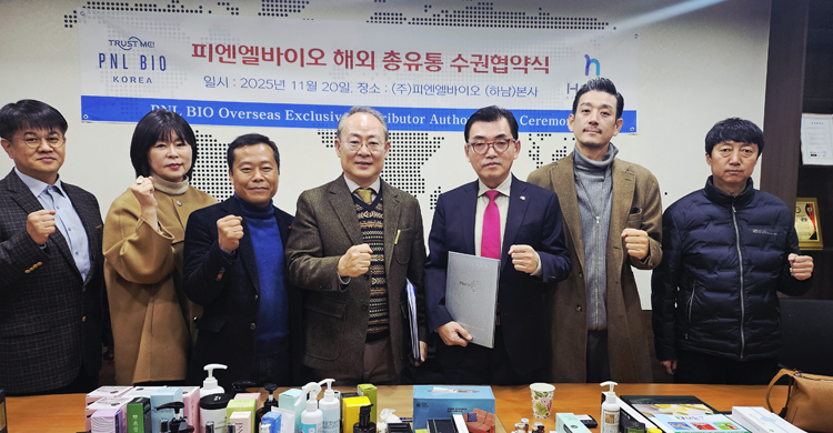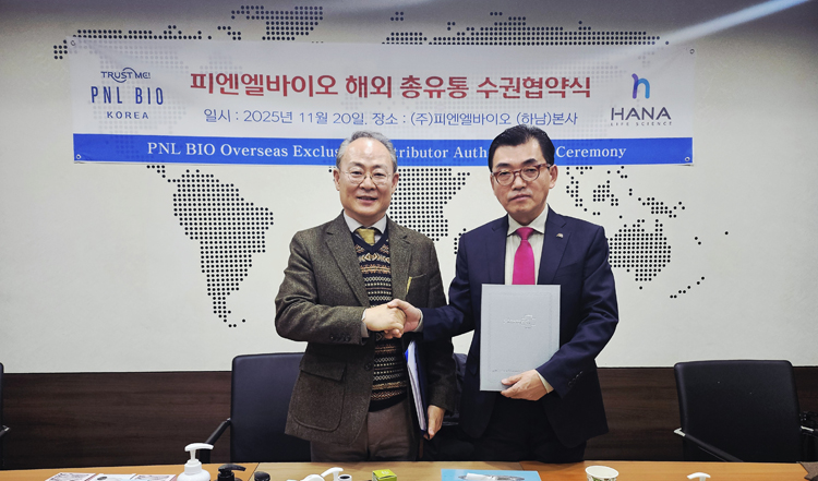 바이오·헬스케어 전문기업 주식회사 피엔엘바이오(PNL BIO)는 2025년 11월 20일 경기도 하남 본사에서 중국 하나생명과학유한공사와 중화권을 포함한 해외 지역을 대상으로 한 총유통 수권 협약을 체결했다고 밝혔다. 양사는 이번 협약을 통해 글로벌 시장에서의 경쟁력과 신뢰도를 한층 강화한다는 방침이다.