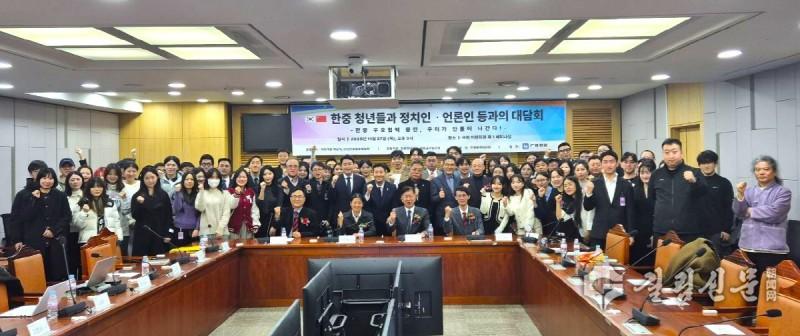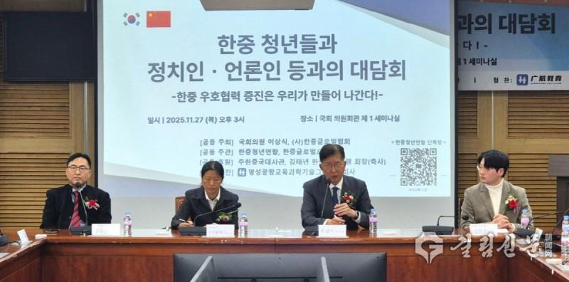 지난 11월 27일 오후 3시, 중한 양국 청년과 한국 정치·언론계 인사가 함께하는 ‘중한 청년들과 정치인·언론인 등과의 대담회―중한 우호협력 증진, 우리가 만들어 나간다!’가 국회 의원회관 제1세미나실에서 개최되었다. 이번 대담회에는 중한 청년과 관계자 등 약 150여 명이 참석해 중한 청년 교류와 양국의 우호 발전에 대한 뜨거운 관심을 보여주었다.