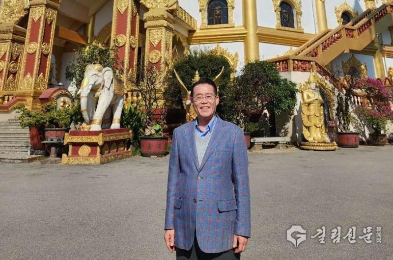 금탑 앞에서 기념사진을 남긴 권기식 한중도시우호협회장