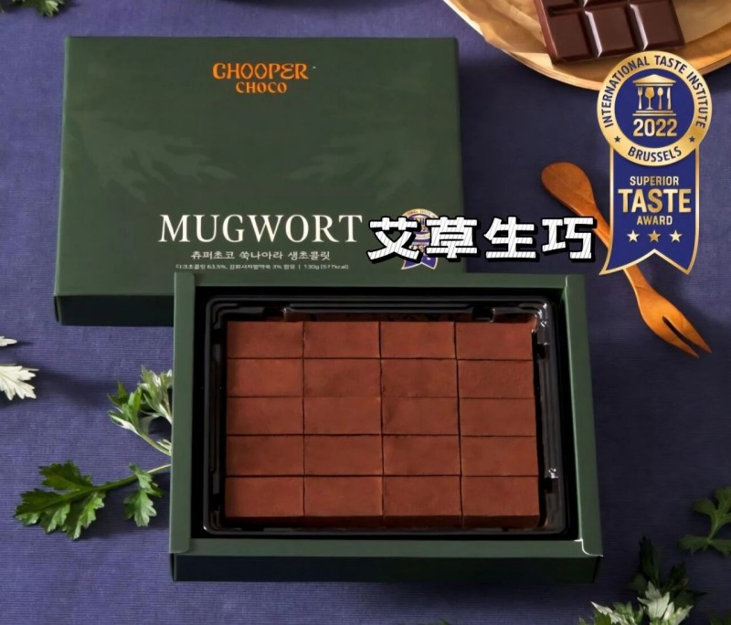 제품은 국제식품음료평가대회에서 ‘최우수 미각상’을 수상했다. 이 생초코는 강화약애(江华药艾)의 은은한 쑥(艾草)향을 담고 있으며 달콤한 맛에 살짝 쓴맛이 섞여 모든 년령대가 즐길 수 있다.