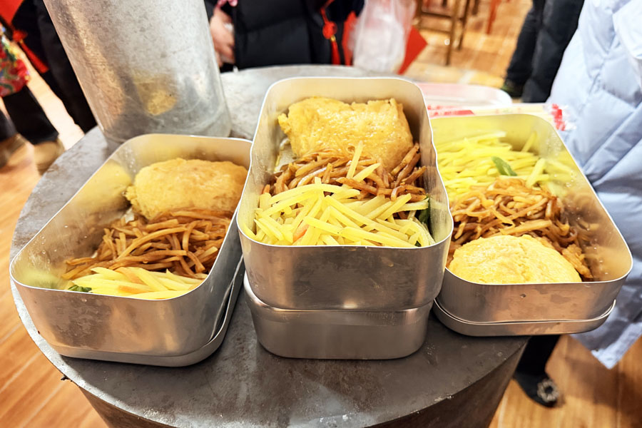 자고로 설을 맞는 분위기를 진정으로 느끼려면 설맞이 장터를 빼놓을 수 없는 법, 원고루 서쪽으로 걷다보면 돼지고기 료리(杀猪菜), 쇠가마 료리(铁锅炖)가 한창이였고 명태집, 당면집, 소고기음식점들도 각자 특색으로 손님들을 맞았다.