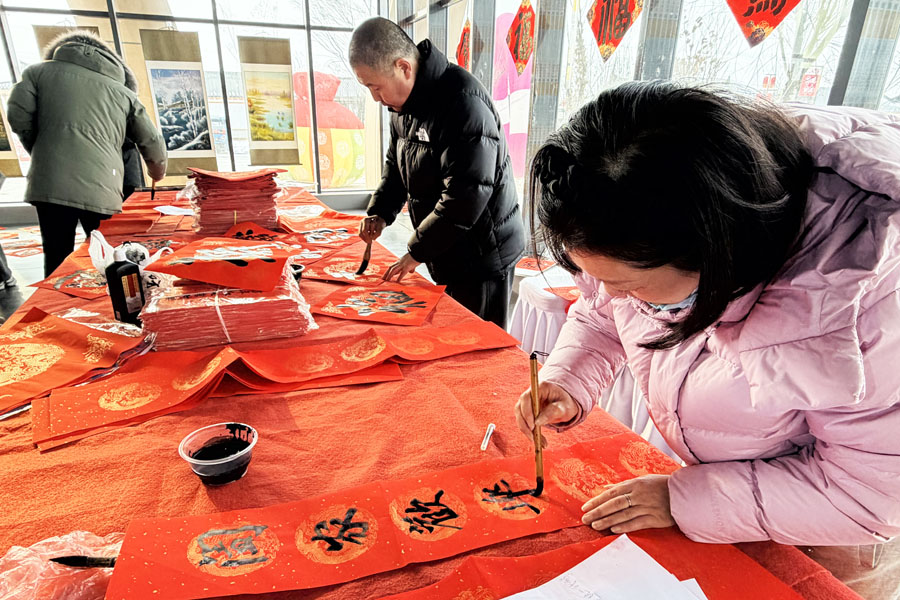 이와 더불어 개막식 현장에 설치된 민족 특색 전시구역에서는 칼그림, 송화석 조각, 버들가지 수공예 등 무형문화유산 기예가 실시간으로 선보였고 춘련 쓰기, ‘복(福)’ 자 종이 오리기 민속 체험도 동시에 진행되여 장인 정신과 전통의 맥을 느끼게 했다. 거기에 묵향이 은은하게 풍기며 짙은 새해의 정취를 만긱하게 했다.