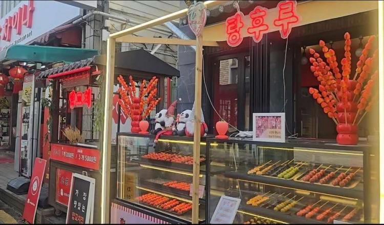 한국 인천 차이나타운에서 촬영한 한 탕후루 가게.