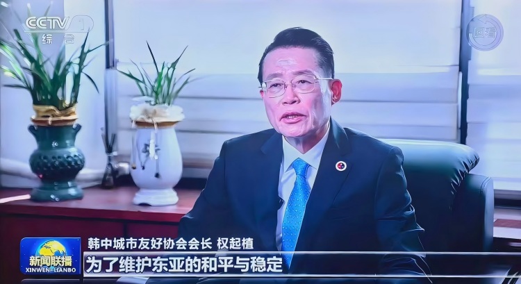 한국 한중도시우호협회장 권기식이 중국 중앙텔레비죤과의 인터뷰에서 일본의 위험한 행보를 규탄하였다