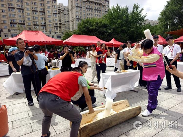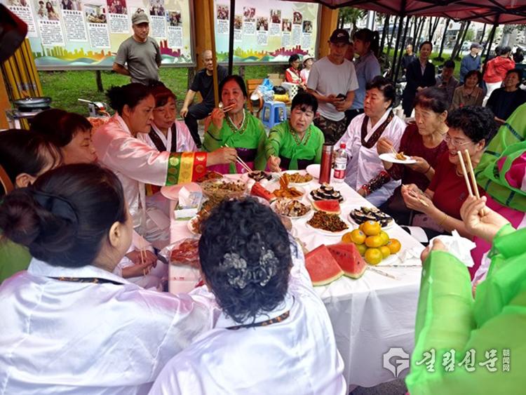 행사장 한편에서는 미식 체험구와 사회구역 텐트장이 인기 코너로 등장했다. 조선족 떡치기와 김치 담그기 시연, 순대 만들기, 고기 뚝배기 만들기… 가는 곳마다 시민들의 발걸음을 끌었다. 식탁에는 삼계탕이며 된장찌개, 찹쌀완자, 동심오색라피 등 여러 민족의 특색료리들이 상다리가 부러지도록 놓여져있어 군침이 돌게 했다.