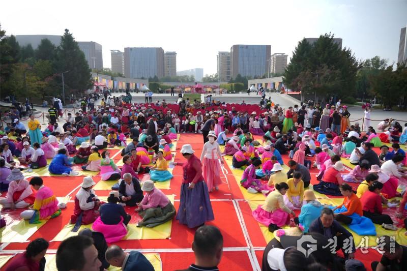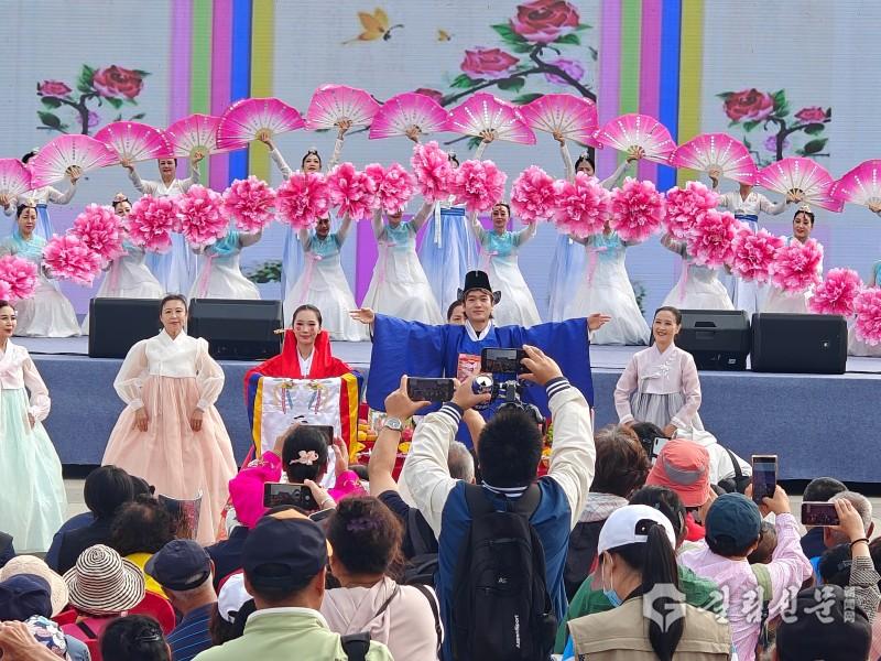 조선족 전통혼례 행렬이 모두의 기대 속에 우아하게 펼쳐졌고 널판을 오르내리는 경쾌한 널뛰기, 정겨운 노래소리와 힘찬 장고춤이 어우러지며 명절의 흥겨움이 절로 넘쳐났다.