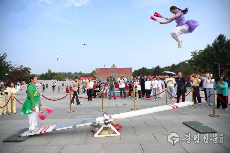 가을 아침의 해살과 함께 장춘세계조각공원은 이른 아침부터 북적였다. 정문에 들어서면 민속 시장, 먹거리 부스 그리고 성·시급 무형문화유산 전시장이 천년 문화의 회랑처럼 펼쳐지며 중화민족의 깊은 문화적 깊이를 생생하게 재현했다. 장춘 옥조각, 자수, 사탕공예(糖画), 짚공예(草编), 떡, 김치 등 40여개의 문화와 음식 부스에서 무형문화유산의 살아있는 전승과 현대적 혁신을 오감으로 체험할 수 있었다. 뿐만 아니라 조선족 전통의상 체험, 전통 음식 제작 체험 등 다채로운 부대 행사는 많은 시민들의 눈길을 사로잡았다.