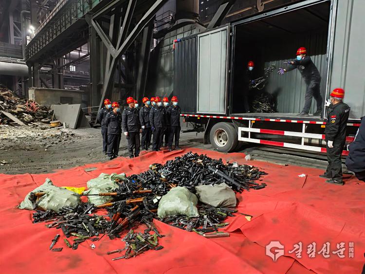 활동 현장에서 성공안청은 홍보 전시판과 전시부스를 설치하여 전 성 공안기관의 총기·폭발물 범죄 단속 특밸행동 성과를 충분히 전시했다. 오전 10시 30분, 소각 명령이 하달되자 각종 불법총기와 관제도구들이 잇달아 통화강철그룹유한책임회사의 제철로에 투입되였다.