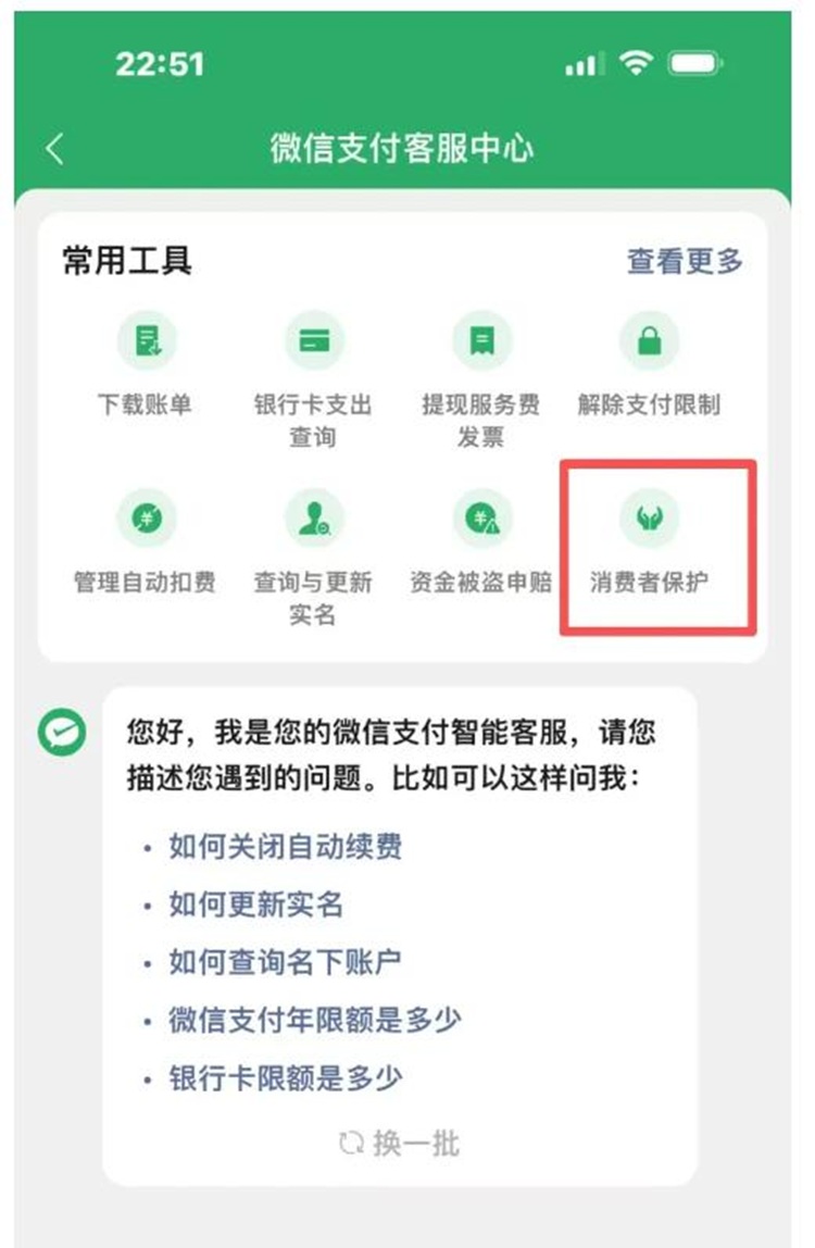 첫번째 단계: 위챗을 열고 ‘나-써비스-지갑’으로 들어가 ‘고객써비스쎈터’를 선택한다.