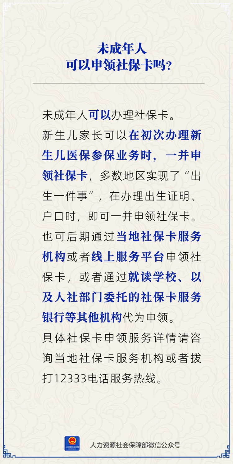 11월 5일, 인력자원사회보장부는 미성년자가 사회보험카드를 신청하고 수령할 수 있는지에 대한 공식 답변을 위챗 공식계정을 통해 발표했다.