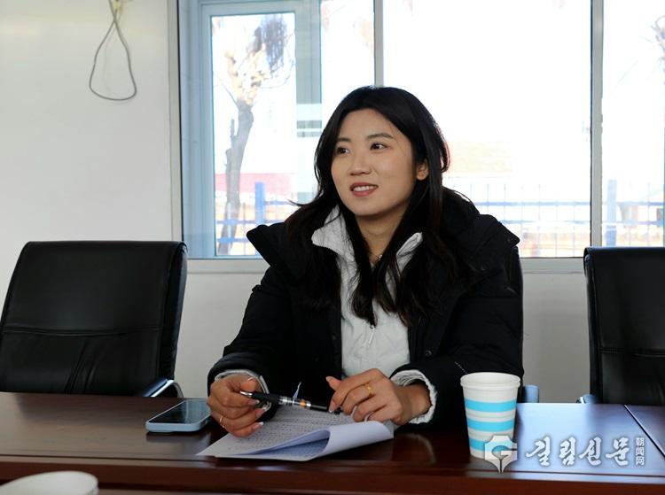 마을에 파견된 후, 그녀의 민족 신분과 고향에 대한 애정은 사업에서 큰 힘이 되였다. 한어가 서툰 어르신들에게는 조선어로 정책을 설명해드리고 휴대전화 사용이 어려운 분들께는 차근차근 도와드렸다. 특히 사회보험 얼굴인증을 완료하지 못하는 로인들을 직접 찾아다니며 도움으로써 ‘마을의 손녀’가 되여 가는 느낌이라고 한다.