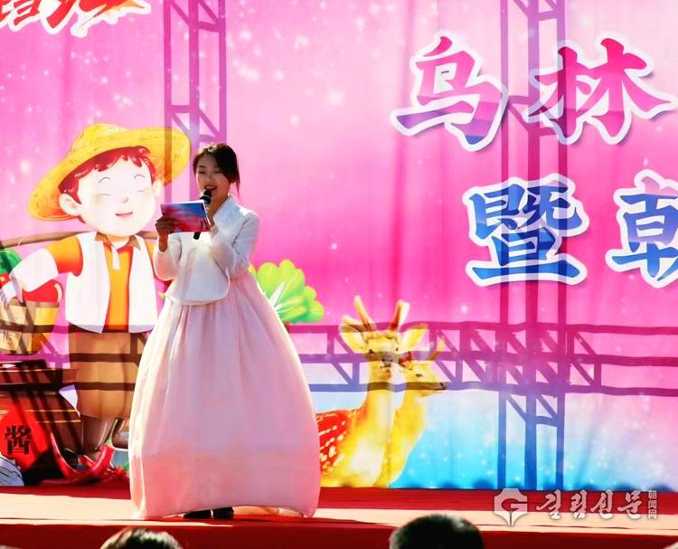 지난 가을, 오림조선족향 가을축제에서 조선어 사회를 맡은 손가정