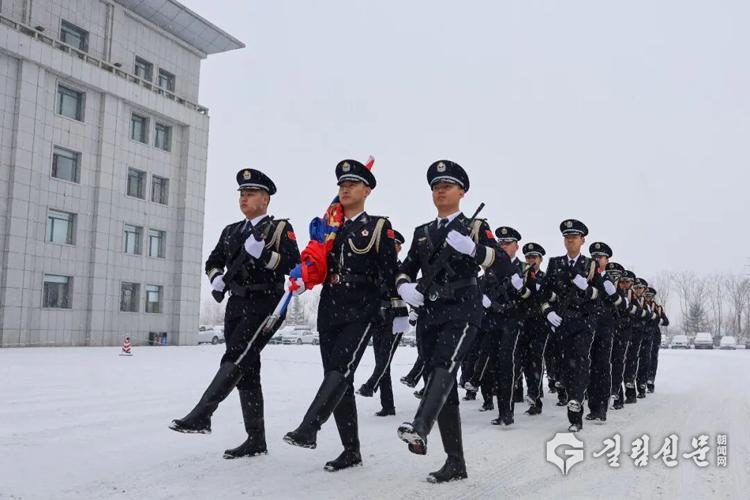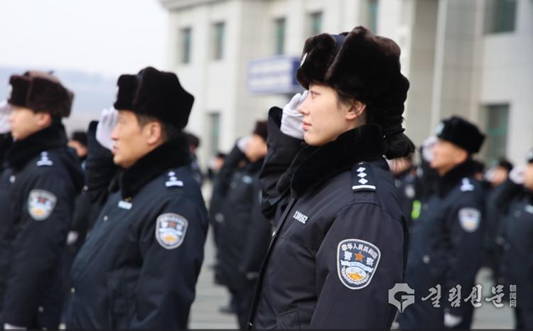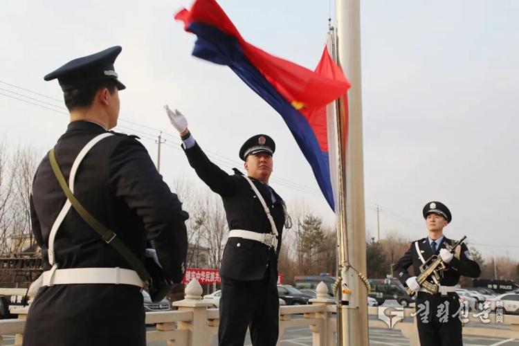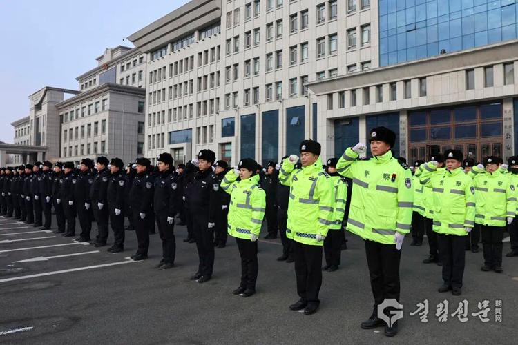 연길시공안국 ‘중국인민경찰의 날’ 국기게양식 장면