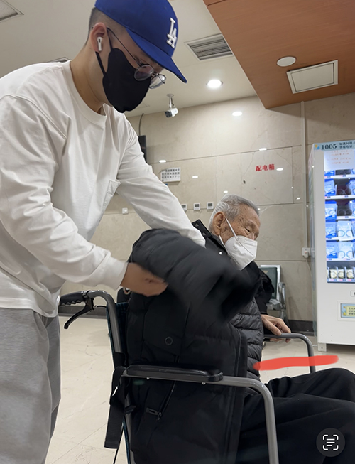 할아버지가 병환에 계실때 박금자씨 아들이 병간호 하고 있다