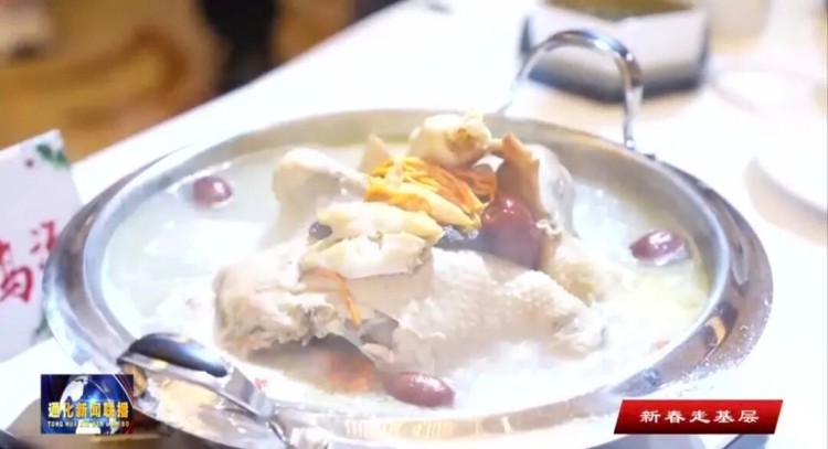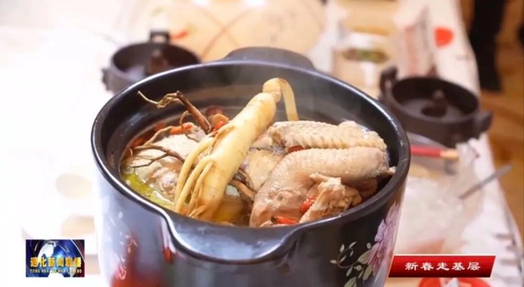 통화는 오래된 인삼 재배와 식용 력사를 가지고 있다. 음력설 련휴 기간 주요 식당과 호텔에서는 인삼을 전통 명절 음식과 교묘히 결합하여 독특한 특색을 가진 인삼 연회를 정성껏 준비했다. 인삼 연회의 료리는 다양했다. 식욕을 불러일으키는 랭채부터 뜨거운 주요 료리, 정교한 디저트까지 매 료리에 인삼 요소가 녹아들어 있다. 특히 삼계탕은 클래식한 별미로 현지에서 방목하여 키운 토종닭을 인삼과 함께 약한 불로 몇시간 끓여 국물이 진하고 맛이 좋으며 인삼의 약용 가치가 국물에 충분히 스며들게 했다. 때문에 국물은 몸을 따뜻하게 하는 보양 작용이 있어 관광객들에게 즐겨보지 못했던 미각 경험을 선사했다.