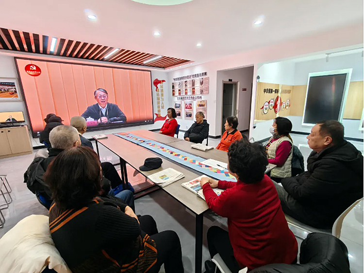 전국 퇴직간부 특별보고회를 제때에 시청하여 학습, 토론, 실천을 병행했다. 당지부 위챗 그룹을 개설하여 1,200여건의 학습내용을 전달했으며 〈중국공산당규률처분조례〉 등 특별 당수업을 진행하고 〈홍색기억을 찾아서〉 등 당사 영상을 학습했다. 로당원들의 신체 상황에 따라 가정을 방문하여 제때에 학습자료와 정신을 전달하여 의미를 되새기고 사상적 토대를 더욱 확고히 다졌다.