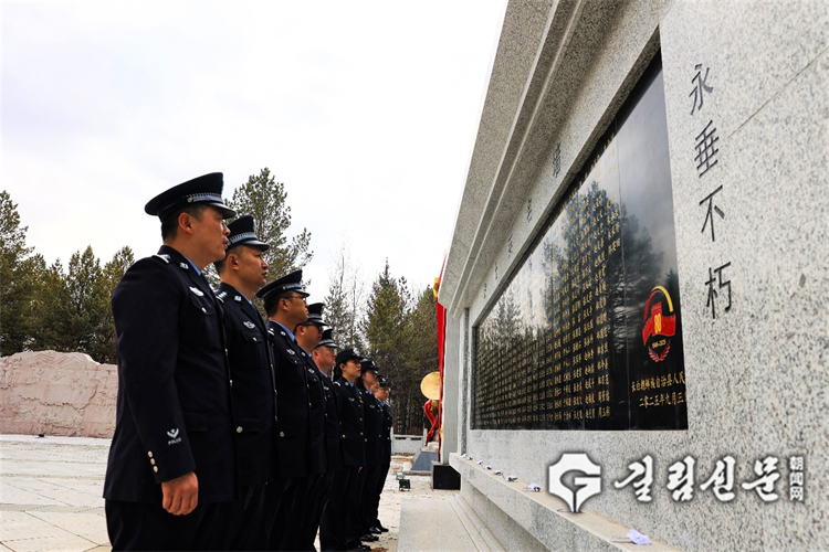 푸른 소나무와 어우러진 렬사릉원에는 장엄하고 숙연한 분위기가 감돌았다. 오전 9시, 전원은 정렬해 혁명렬사기념비를 향해 엄숙히 대렬을 맞추어 서 있었다. 《헌화곡》이 울려 퍼지는 가운데 경찰대표는 화환을 정중히 들어 기념비로 천천히 발걸음을 옮겼고 영웅선렬들에게 화환을 바쳤다. 민족독립과 인민해방을 위해 용감히 희생한 혁명선렬들을 깊이 추모했다. 이어 경찰대표는 입당 선서를 다시 되새겼고 선렬의 유지를 이어받아 충성스럽게 직무를 수행하겠다는 굳은 결의를 다졌다.