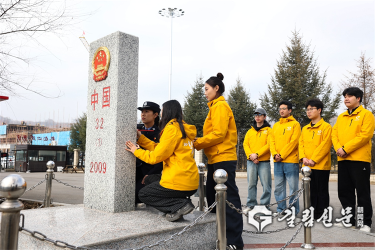 이어, 장백출입경변방검사소 경찰들은 서부계획 자원봉사자들을 인솔하여 엄숙한 국문 아래에서 ‘계비 글자 덧칠’ 활동을 진행했다. “계비는 국가 령토 주권의 상징입니다……”라는 경찰들의 설명 속에 자원봉사자들은 ‘중국’이라는 글자와 번호를 조심스럽게 다시 칠했다. 한획 한획에 담긴 것은 “맑고도 순수한 사랑, 오직 중국을 위하여”라는 확고한 신념이였다. 서부계획 자원봉사자 리씨 학생은 “처음으로 직접 계비에 덧칠을 해보니 ‘조국이 가장 필요로 하는 곳으로 가자’는 말의 의미를 더욱 깊이 알게 되였다. 자원봉사자로서 저는 실제 행동으로 변경에서 후회 없는 청춘을 써 내려가겠다.”고 다짐했다.