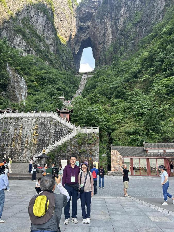 5월 30일, 장가계 천문국가삼림공원을 찾은 한국 관광객이 기념사진을 찍고 있다. /신화넷