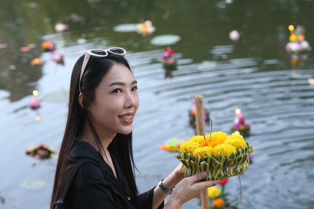 11월 5일, 타이 아유타야에서 한 녀성이 러이끄라통(水灯, 수등)을 들고 있다.