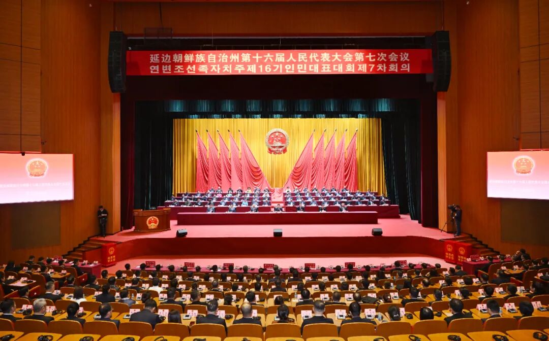 23일, 연변조선족자치주 제16기 인민대표대회 제7차 회의가 제반 의정을 원만히 수행하고 연변로동자문화궁에서 승리적으로 페막되였다.