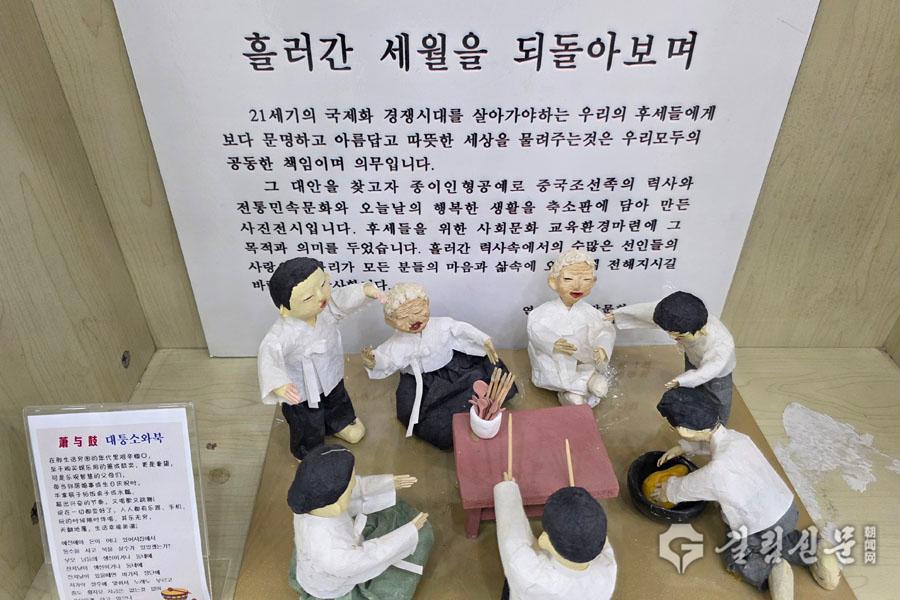 연길시 신애상백화 2층에 마련된 〈흘러간 세월을 뒤돌아보며〉 전시장, 관람객들은 작은 종이인형들이 만들어내는 아기자기하고 생동감 있는 장면들 앞에서 발걸음을 멈춘다. 황무지를 개간하는 이주민들의 고달픈 일상, 일제에 맞서 싸웠던 항일의 력사적 순간, 자치주 성립 경축의 환희의 날까지… 중국조선족의 100년 이주사와 생활사가 고스란히 스민 30여 점의 종이인형 소품들은 마치 살아있는 력사 교과서와 같았다.