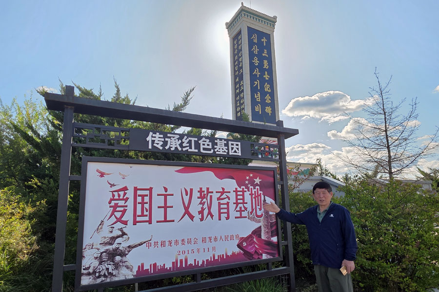우리는 비석 앞에 멈춰서서 묵념을 올렸다. 차가운 비석은 이제 온기를 머금은 듯했고, 그것은 굴하지 않는 령혼들이 90년의 시간을 가로질러 우리와 무언의 대화를 나누고 있는 것 같았다. 비석을 스치는 소슬한 가을바람은 귀전을 스치며 마치 당시 전투의 참혹함을 우리에게 이야기해 주는 듯 싶었다.