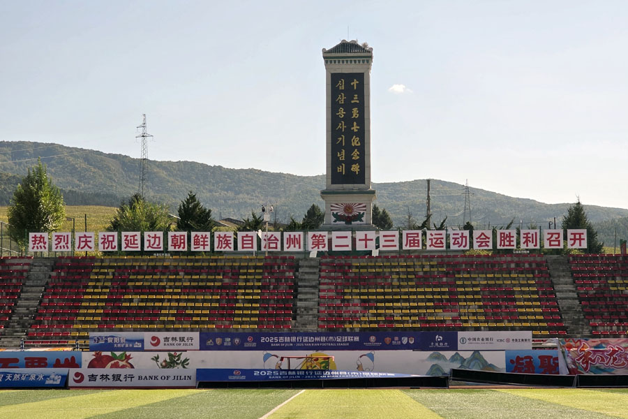 화룡시체육장 동쪽에 세워진 십삼용사기념비
