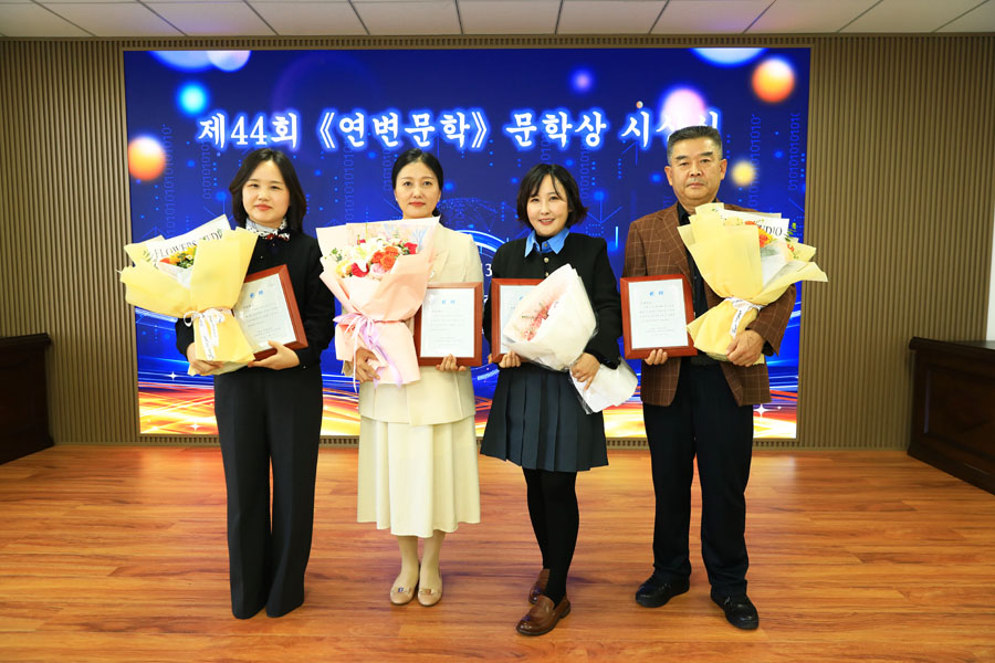 제44회 《연변문학》 문학상 수상자들(왼쪽으로부터 박영화, 현청화, 허연주, 신철호)